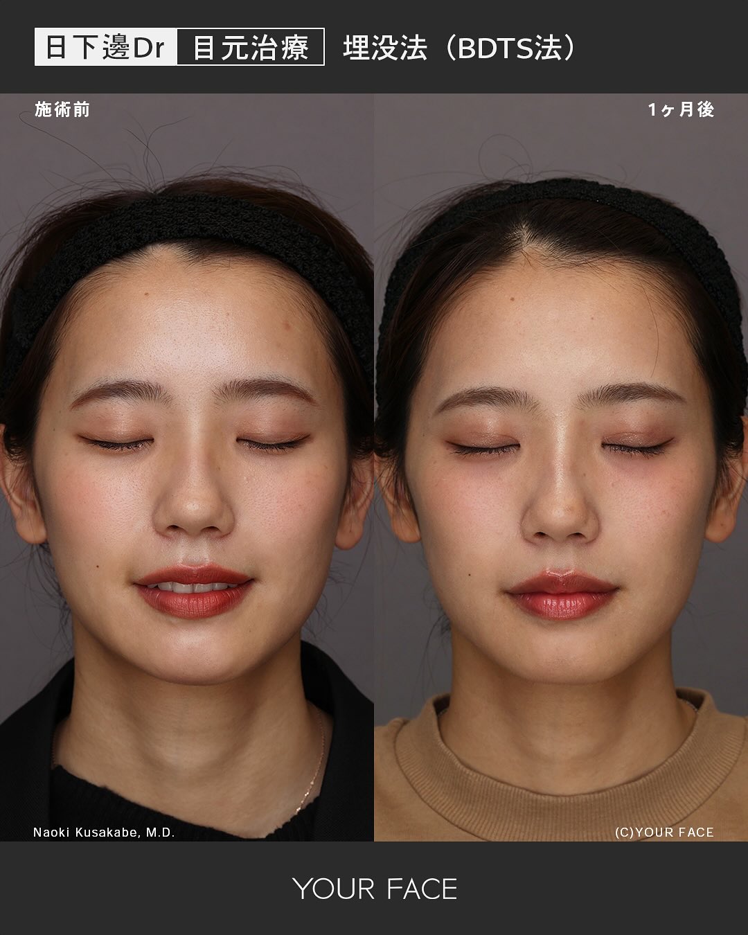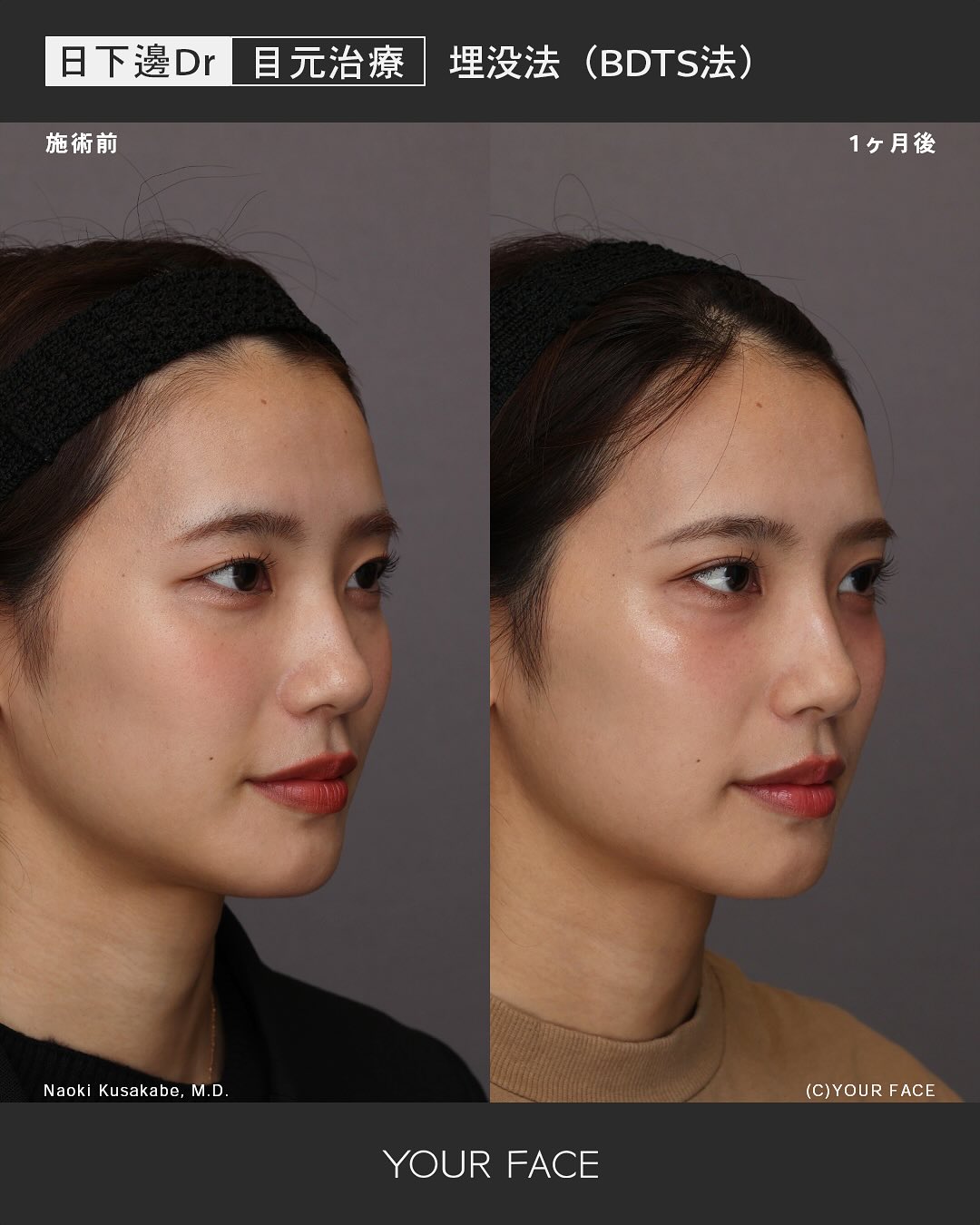 5年程前に埋没されており、緩んで二重幅が狭くなってきた事と、元々くぼみ目気味だった事で夕方になると二重のラインの上に線が入り三重になってしまう事がお悩みでした。