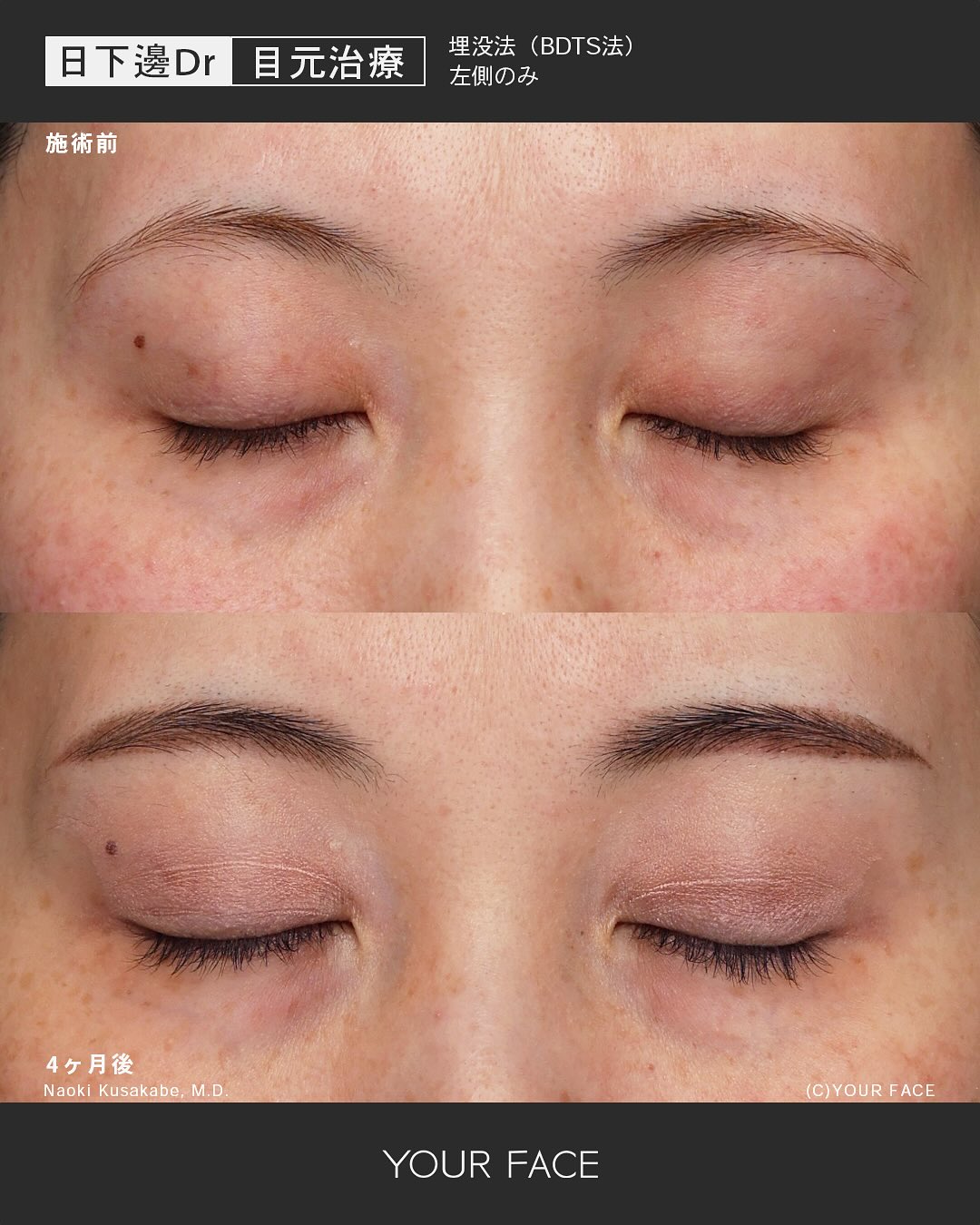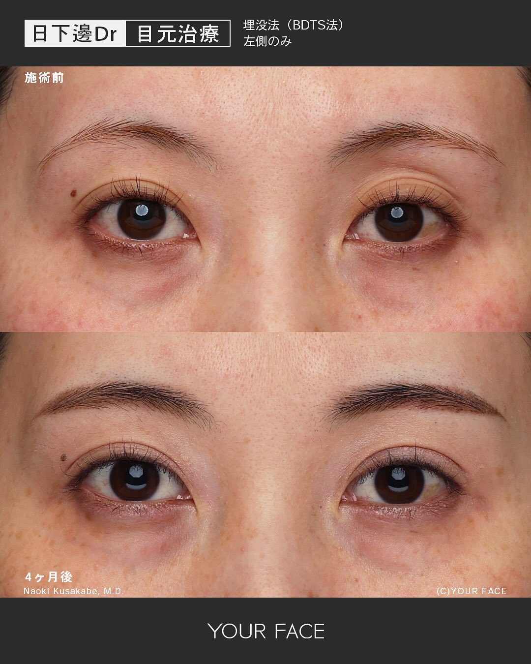 しっかりとした二重になり左右差もなくなり、くぼみ目も改善されました。
