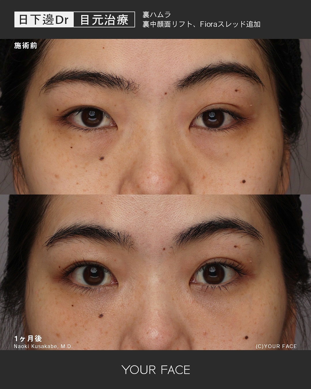 この方は子供の頃からクマがあり年齢と共にたるみも出て気になるようになったとの事で改善を希望されました。