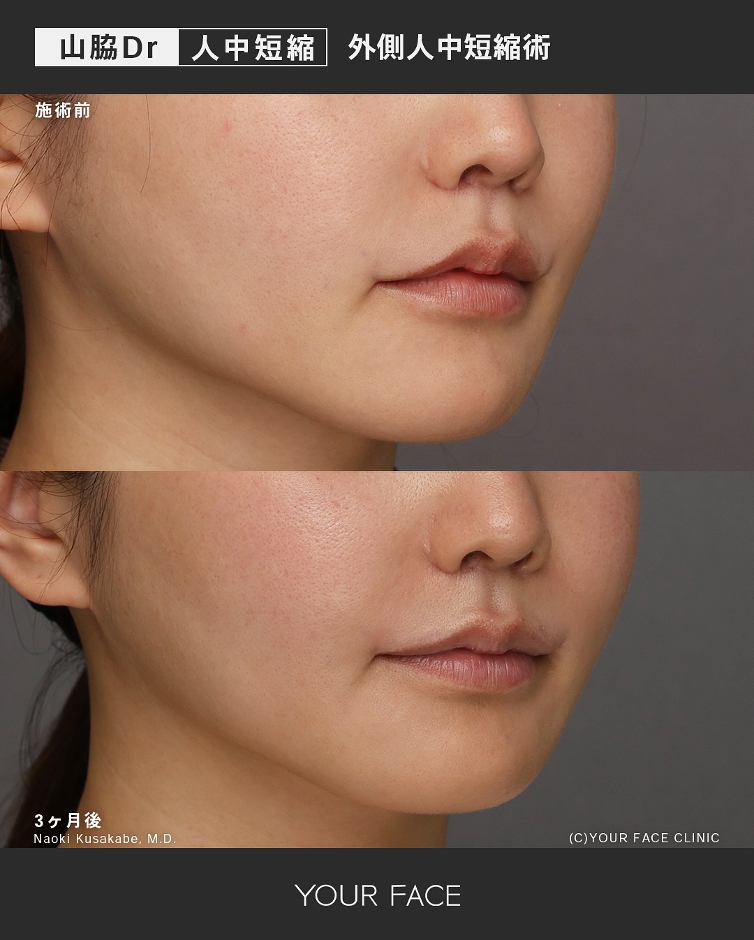 口角の内側の被さりをなくし、上唇の横幅を保ちながら中顔面を自然に短縮。