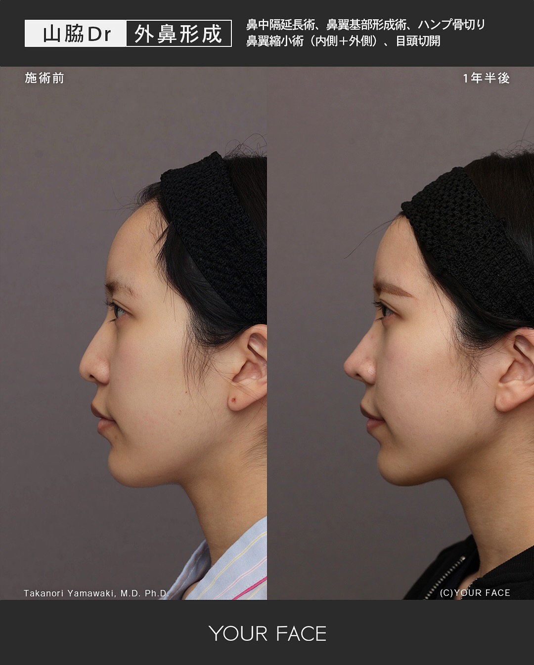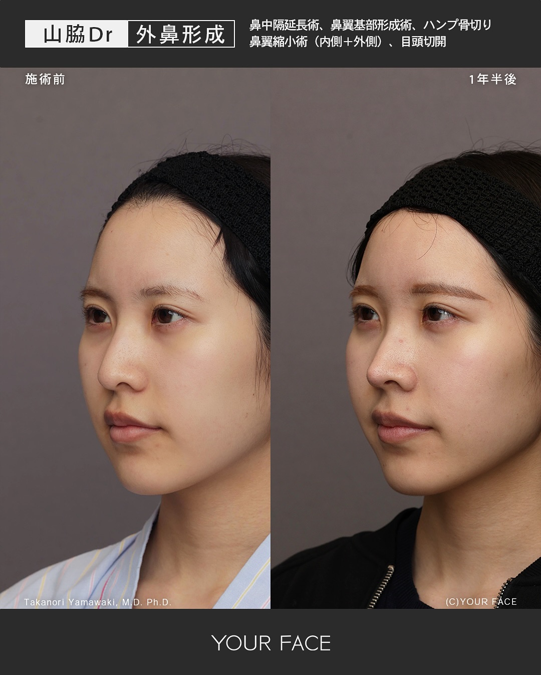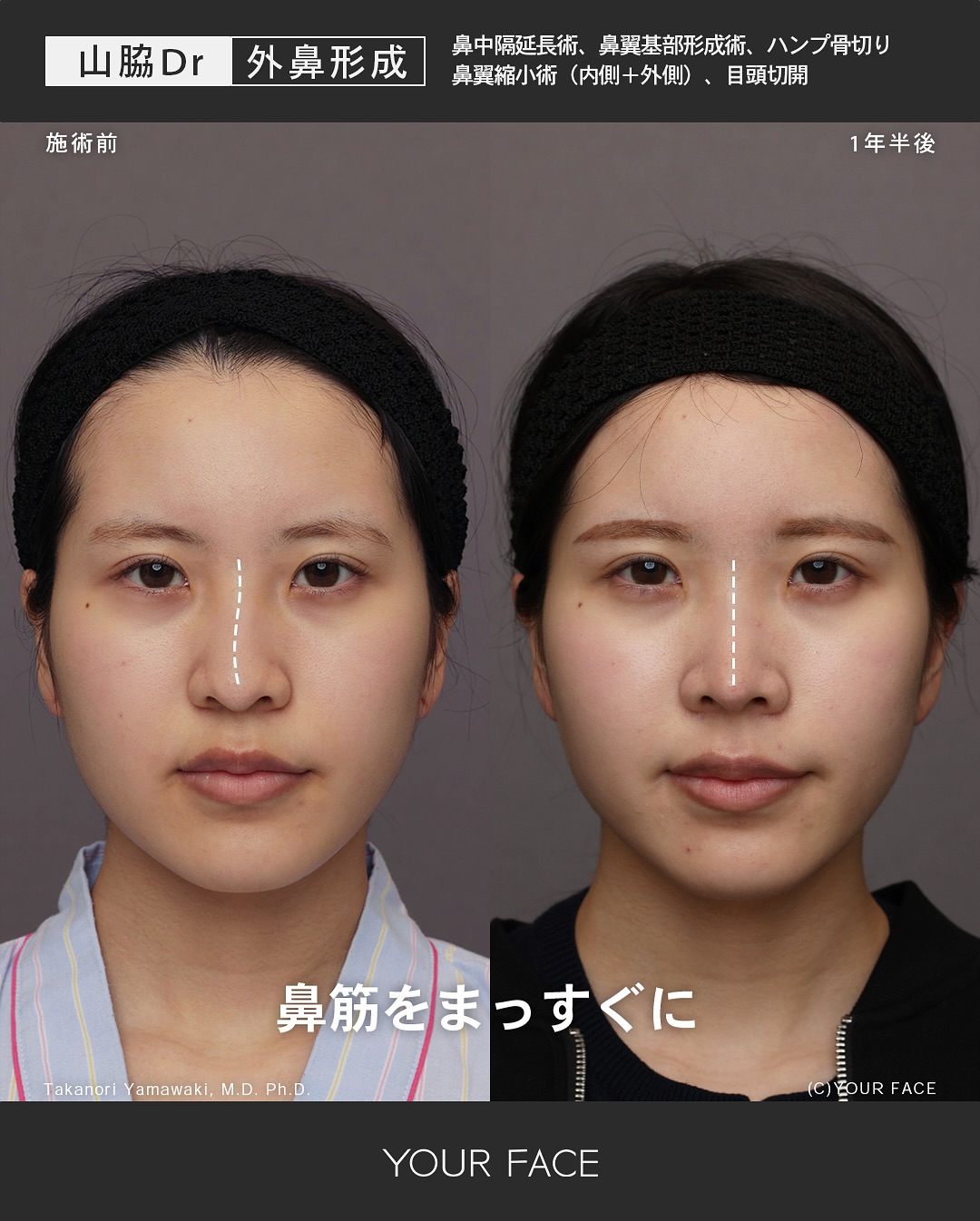 − 少し削る + 鼻中隔延長で背側ラインをデザイン。