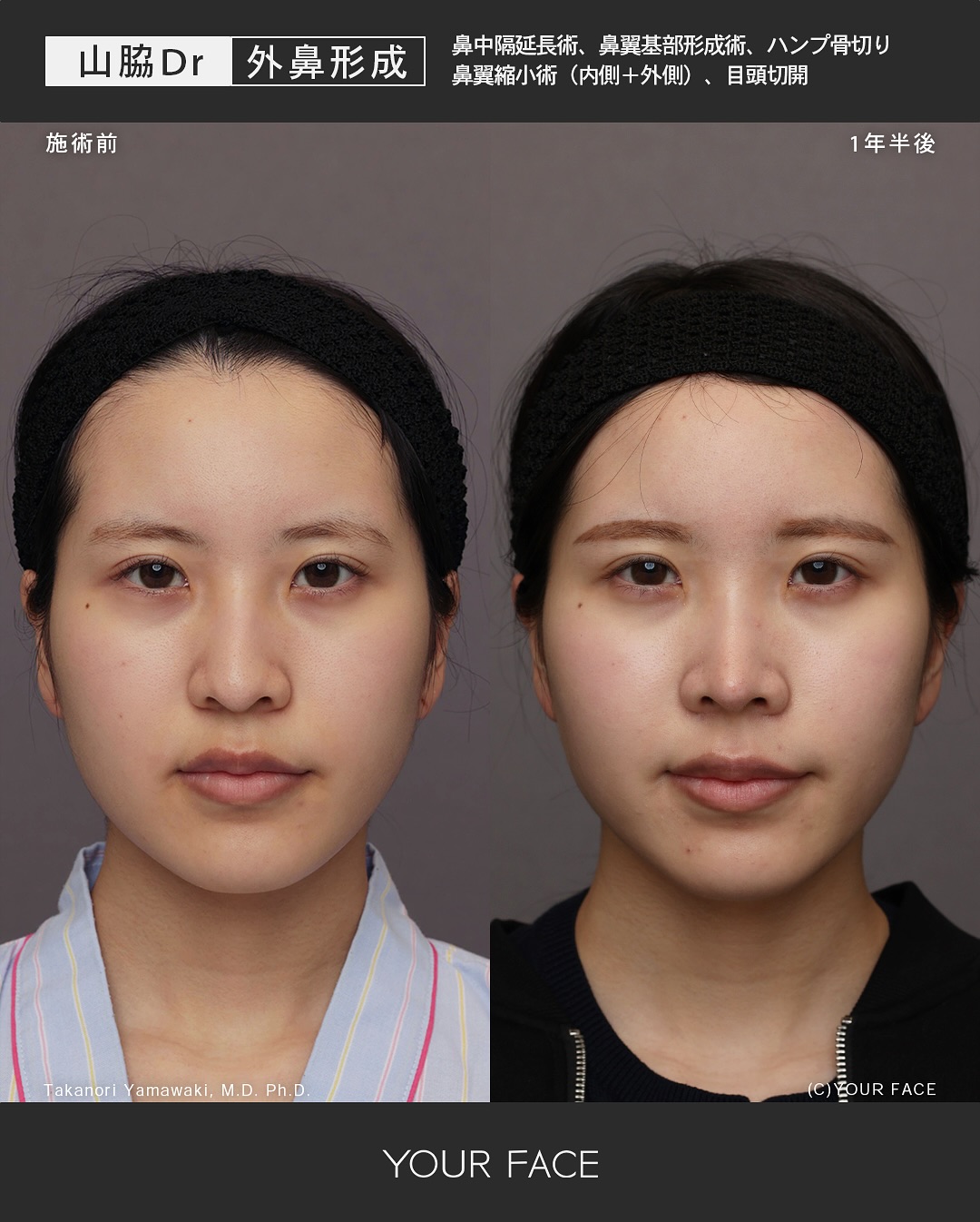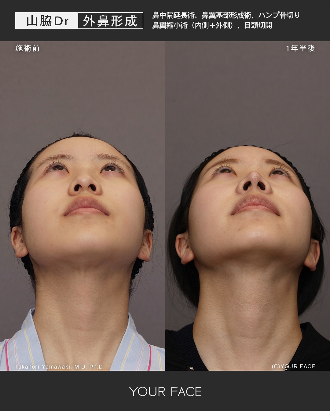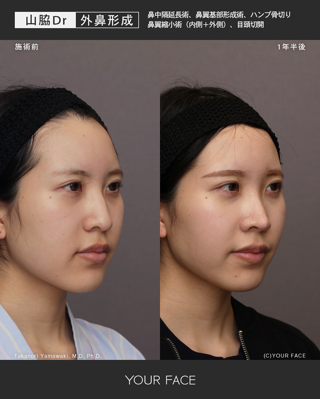 − 少し削る + 鼻中隔延長で背側ラインをデザイン。