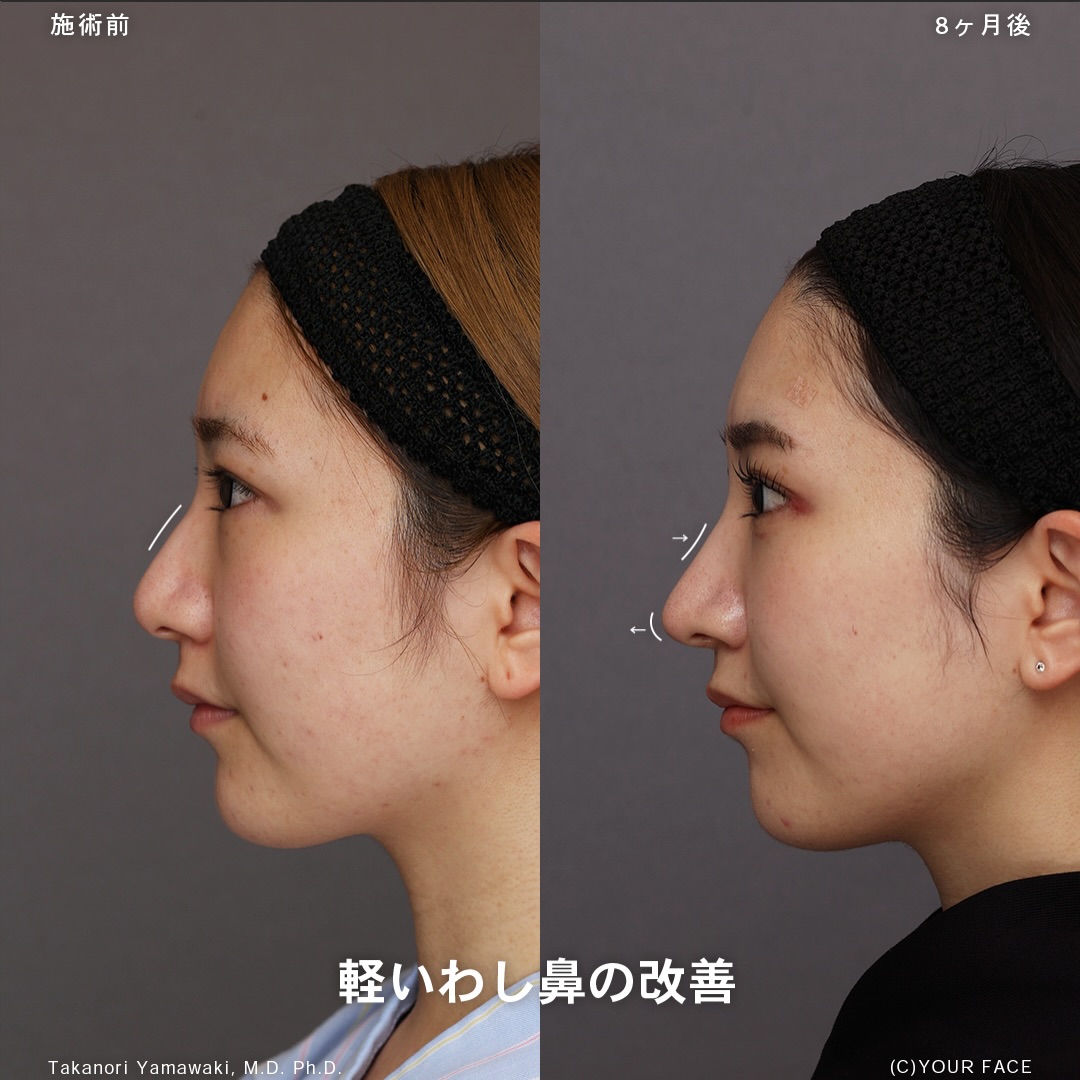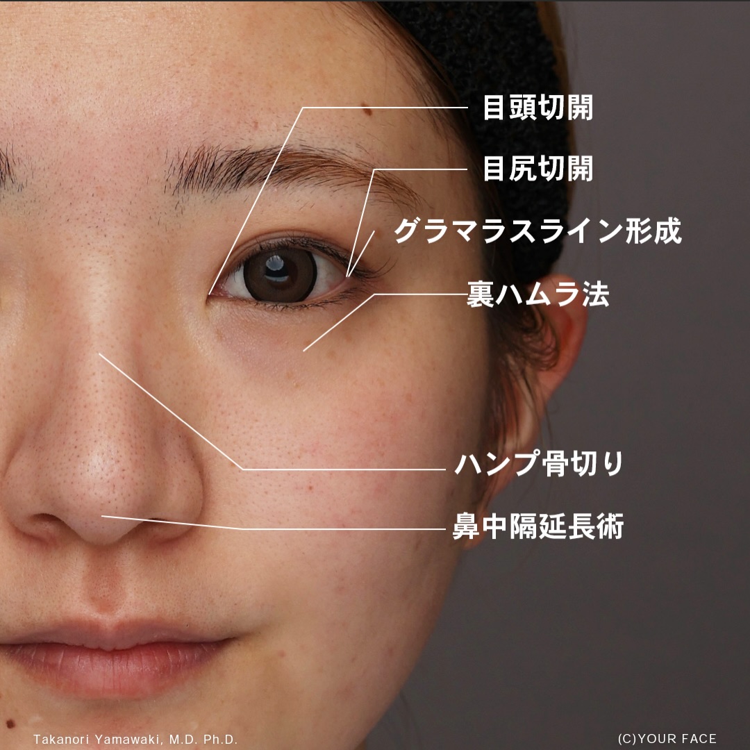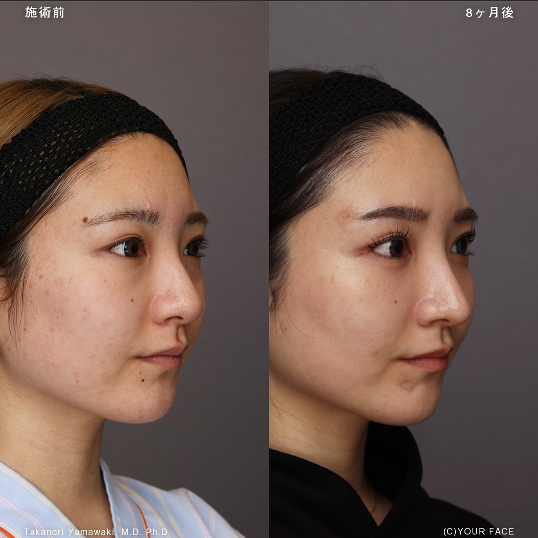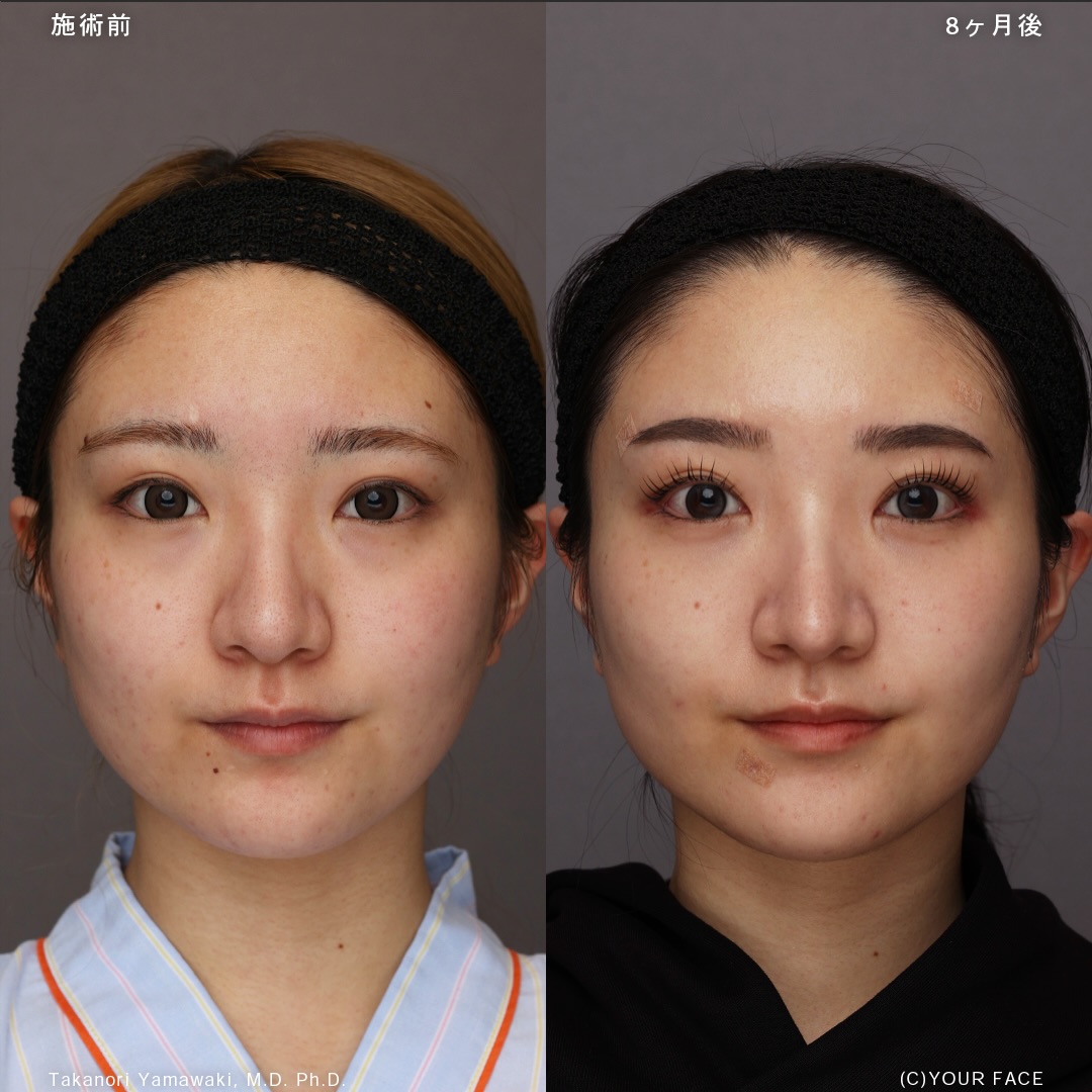 This brings a cleaner front-view nasal line, brighter eyes, and a more balanced facial impression. It is a transformation that becomes especially evident when looking straight at the camera, which is the essence of the Yamawaki method.