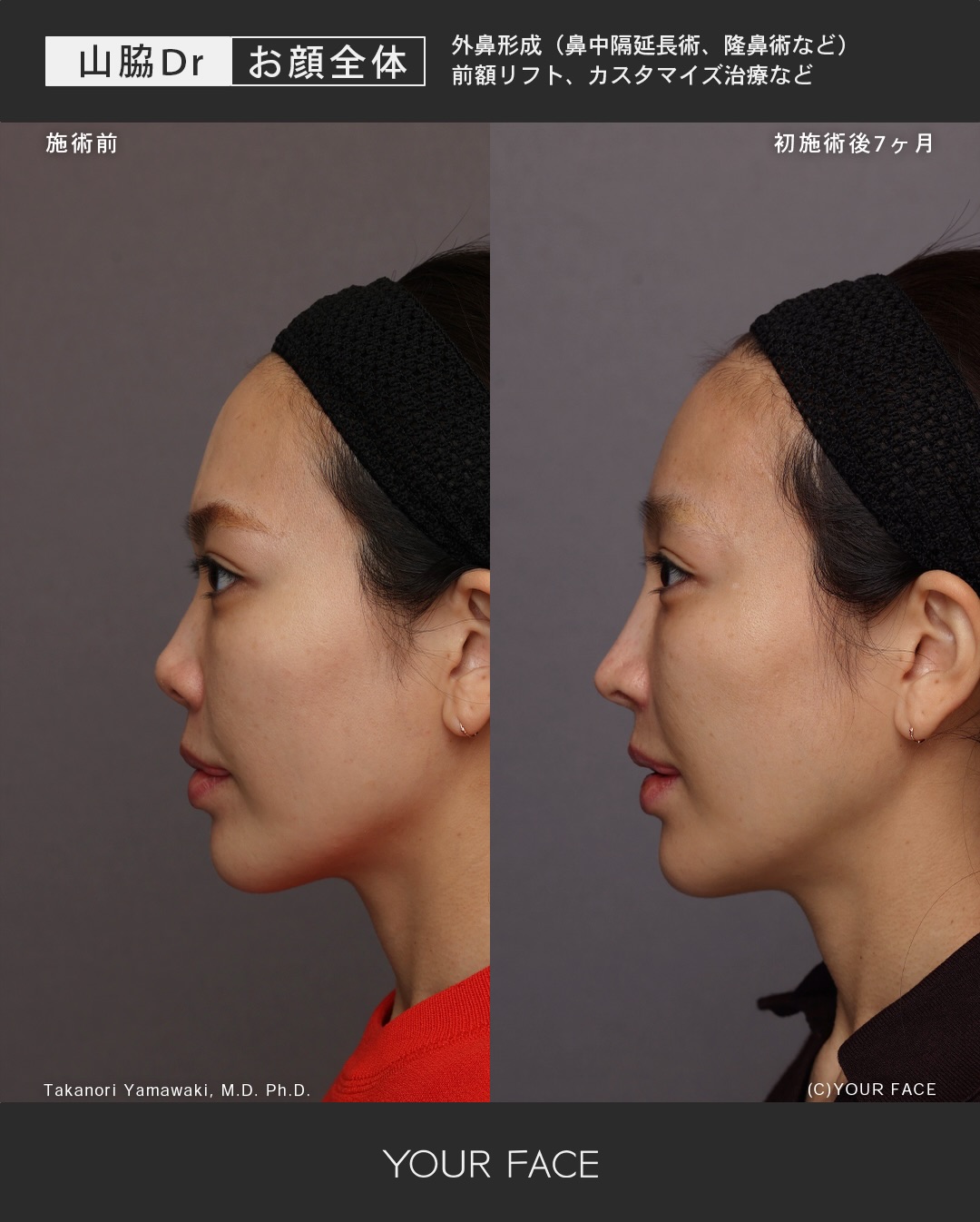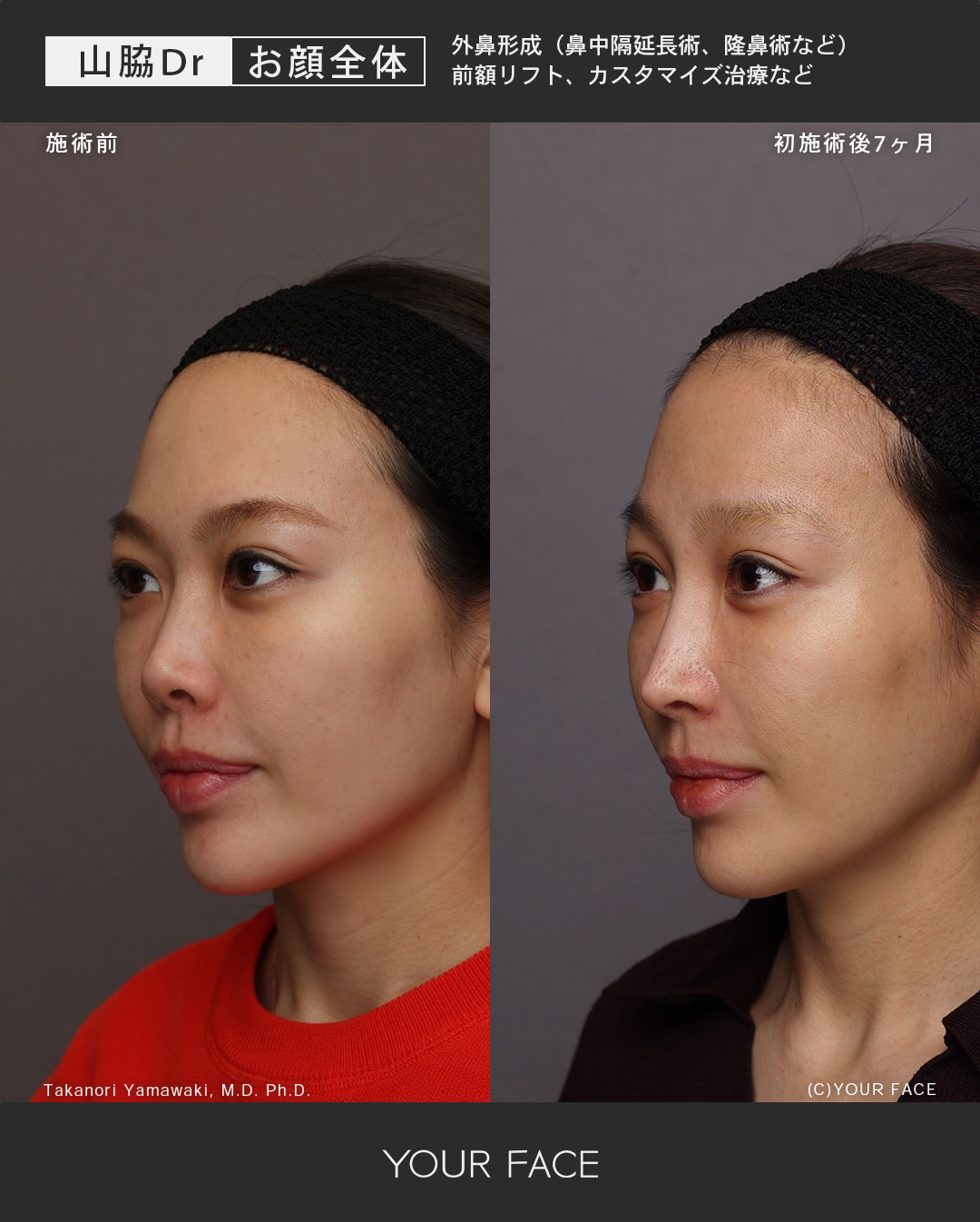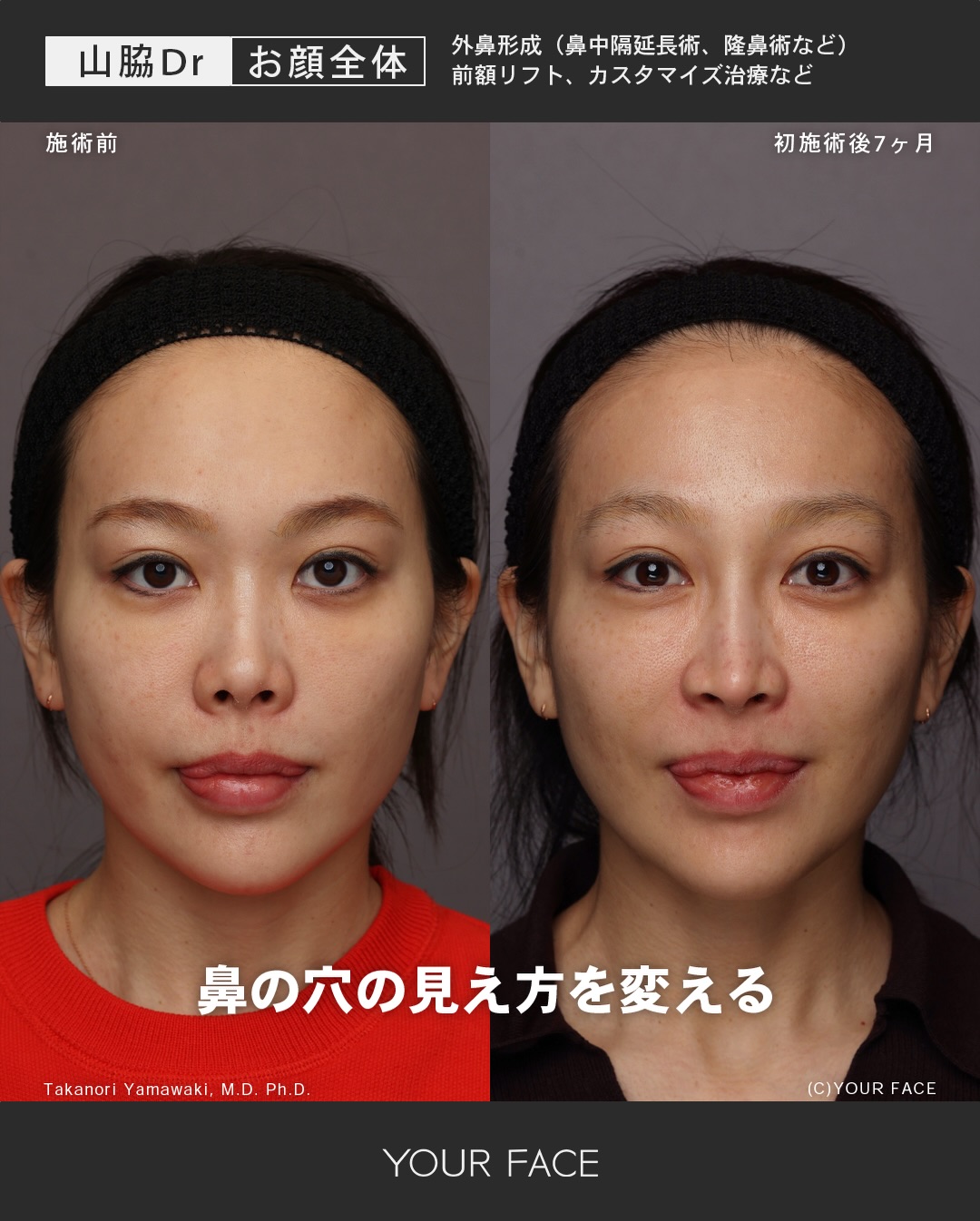 | 鼻柱基部形成術 | シュミレーション通りにならない、血腫、腫れ、嘔気、疼痛 |