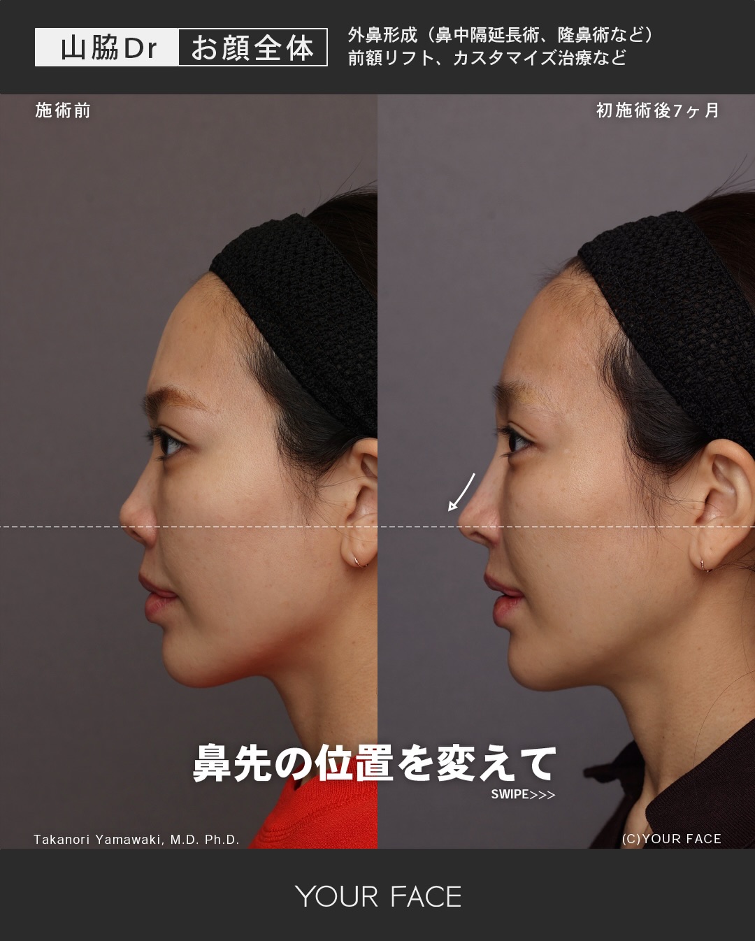 | 鼻中隔延長術 | シュミレーション通りにならない、血腫、腫れ、嘔気、疼痛 |