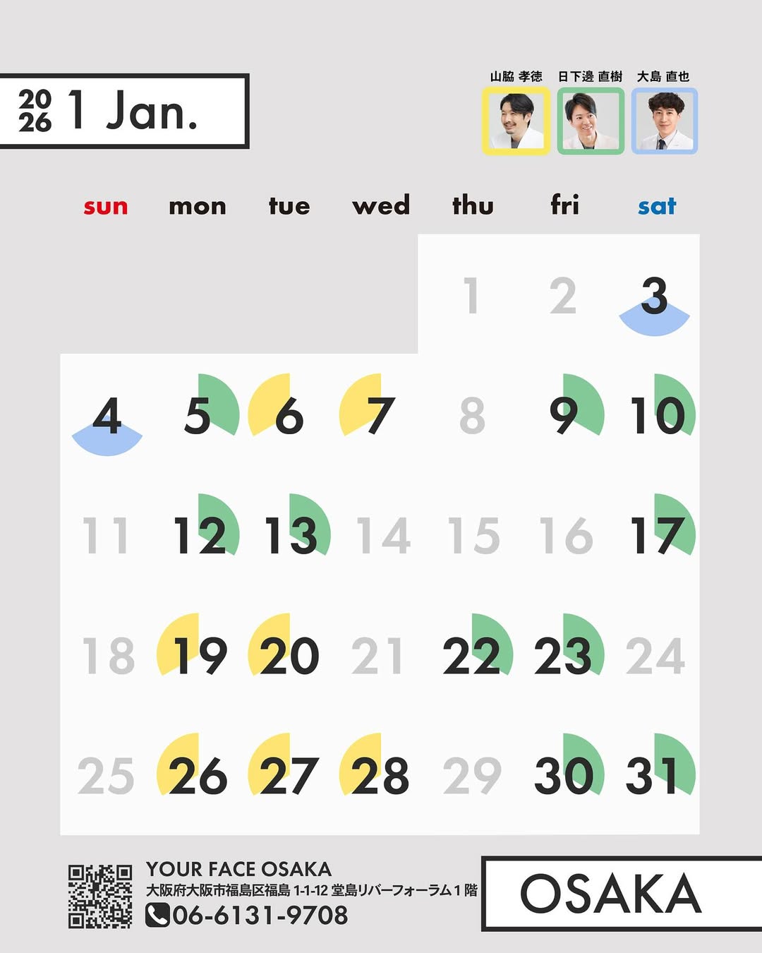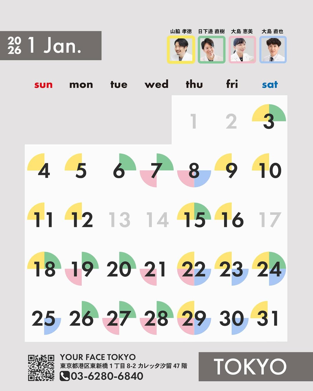 2026年1月の診療日及び医師勤務日をお知らせいたします。